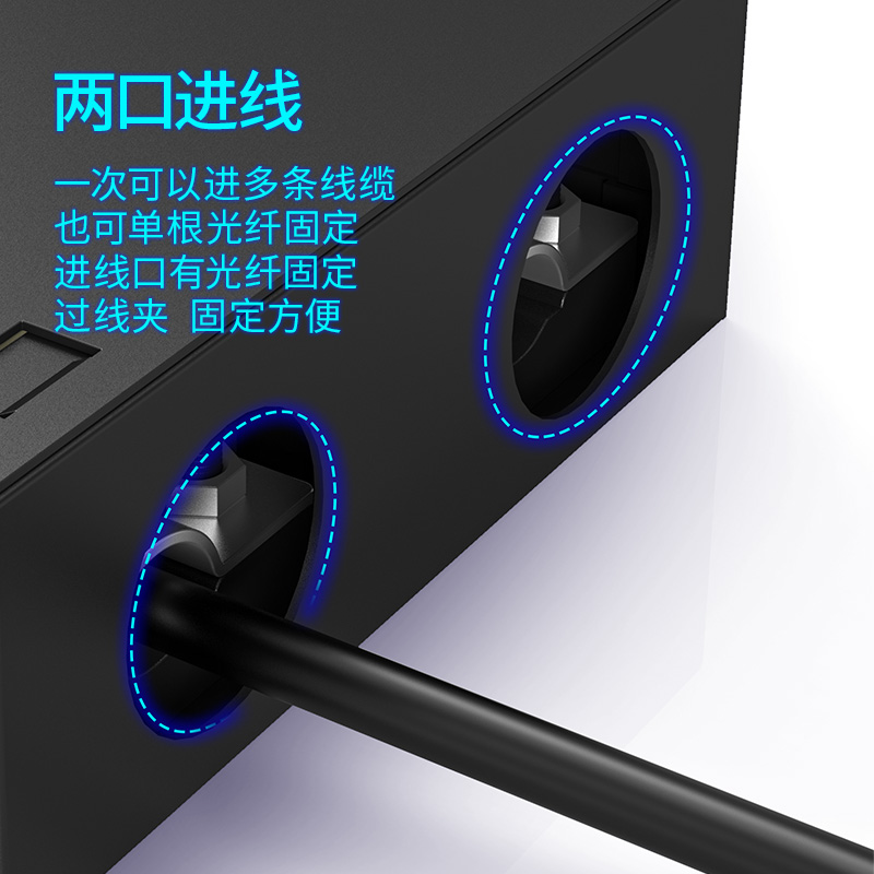 以高质量的冷轧钢板制作,表层静电喷涂烤漆处理,外观精美。通用型面板设计,可安装ST/ SC/ LC /FC等不同类型耦合器、易拆卸前盖及上盖扣设计,免工具即可拆卸前盖及上盖板,装卸更为容易
