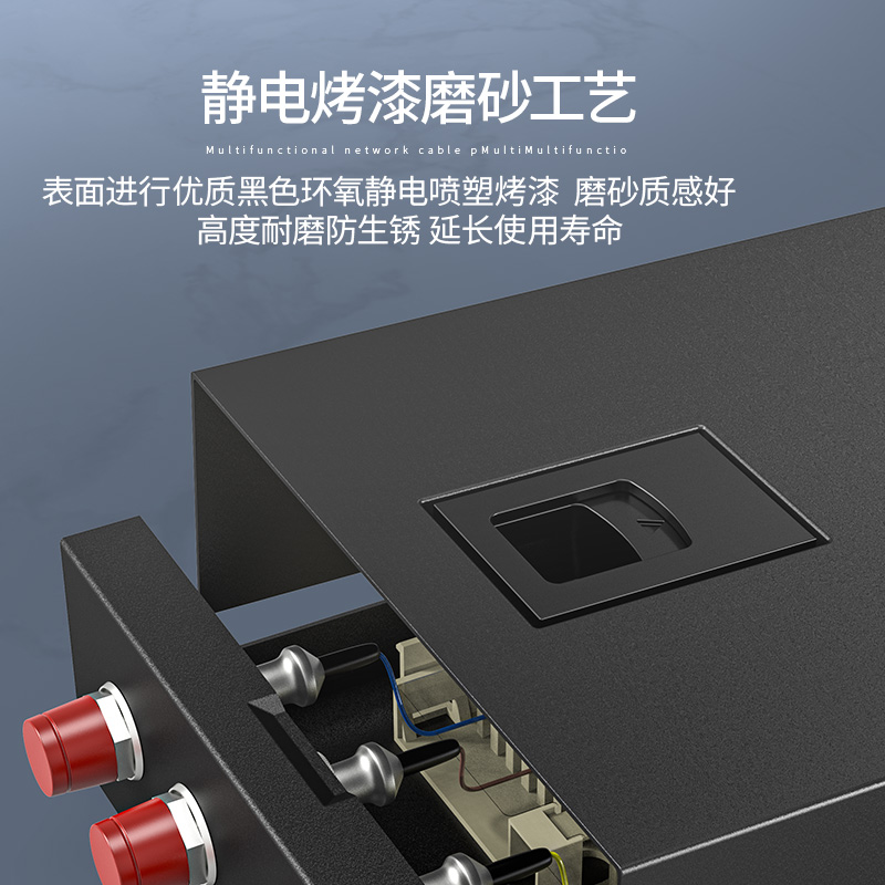 以高质量的冷轧钢板制作,表层静电喷涂烤漆处理,外观精美。通用型面板设计,可安装ST/ SC/ LC /FC等不同类型耦合器、易拆卸前盖及上盖扣设计,免工具即可拆卸前盖及上盖板,装卸更为容易