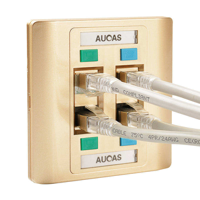 适用于各类网络工程,办公,居家使用,斜口引导插入,更显美观,可安网络信息模块RJ45接口、语音RJ11电话模块和CATV有限电视模块安装,拆卸方便。