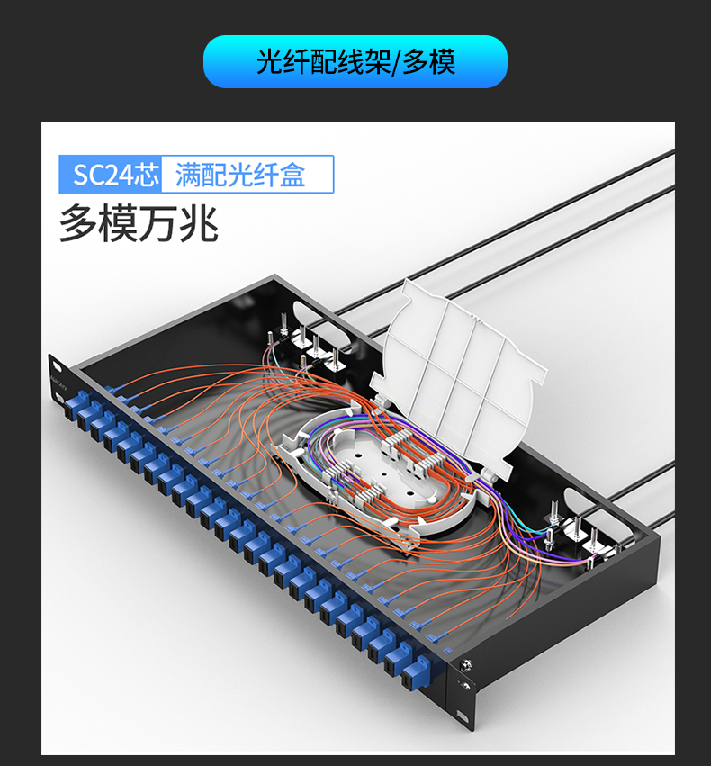 以高质量的冷轧钢板制作,表层静电喷涂烤漆处理,外观精美。通用型面板设计,可安装ST/ SC/ LC /FC等不同类型耦合器、易拆卸前盖及上盖扣设计,免工具即可拆卸前盖及上盖板,装卸更为容易